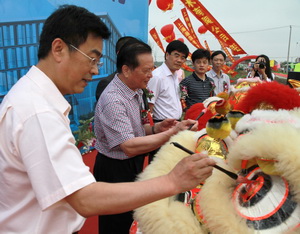 王志華副縣長(zhǎng)和劉際潘副司令在為雄獅點(diǎn)睛