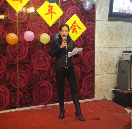 在這次團年會上,首先公司副總經(jīng)理兼銷售部總監(jiān)宋萍女士作了致詞,而且還作了上年的工作總結及11年的五項重點項目布署,讓大家勢氣大增,精神鼓舞,讓大家有了更好的規(guī)劃與奮斗目標。緊接著,公司董事長宋宗團先生上臺發(fā)表了精彩的祝酒詞。揭開了2011年團年晚會的精彩表演。