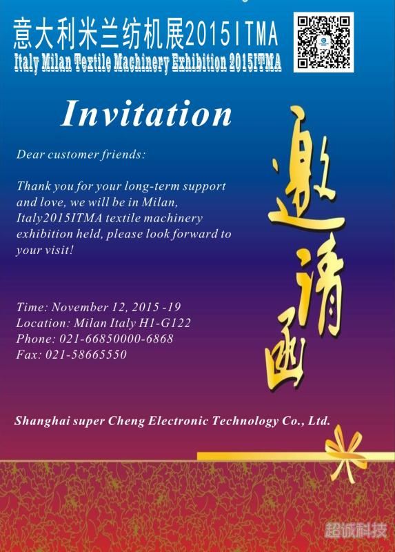 上海超誠電子科技有限公司將于11月份赴意大利米蘭參加2015ITMA紡機展